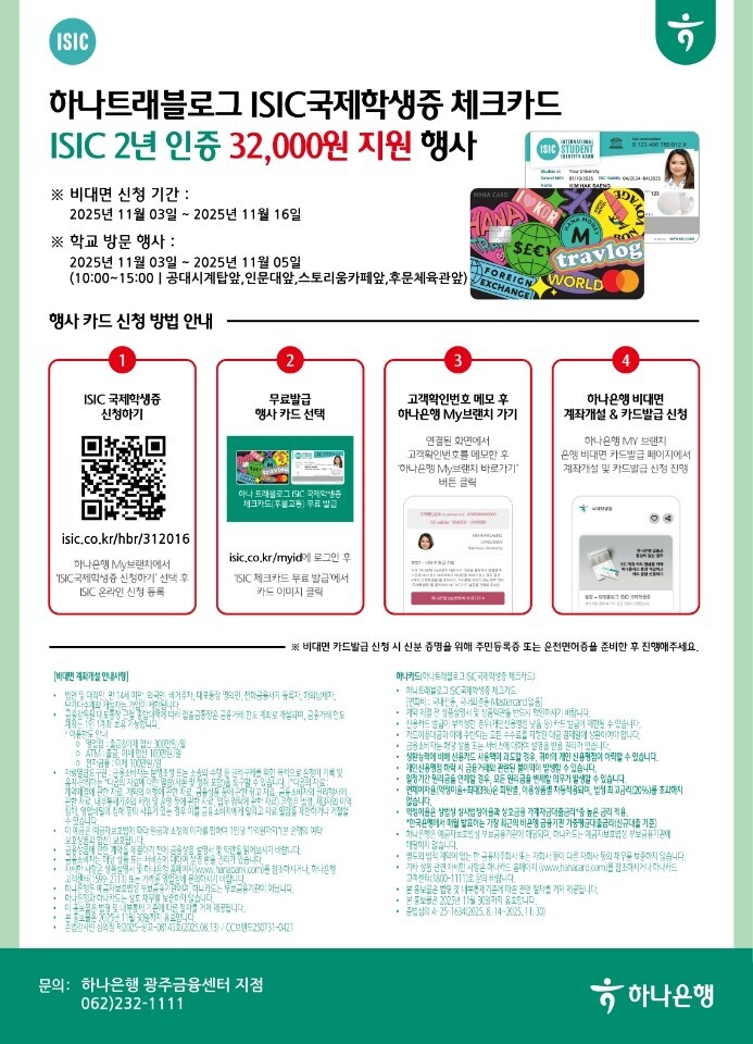 국제학생증 ISIC 발급비 지원행사 안내(11/3~6)