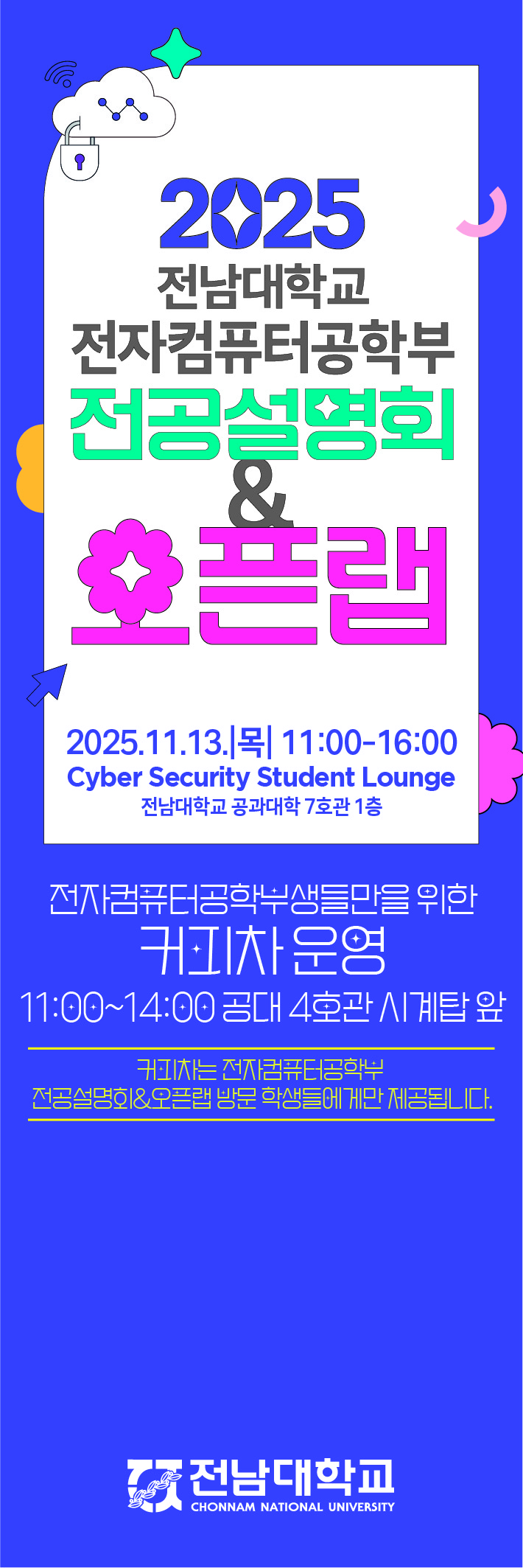 2025년 전자컴퓨터공학부 전공설명회 & 오픈랩 안내(11/13 11:00~16:00, 다과 및 커피 제공)